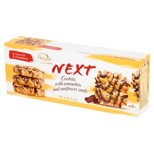 Ciastka kruche z ziarnami słonecznika i dyni dekorowane polewą kakaową Bogutti 145 g
